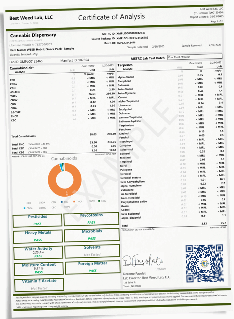 When viewing a COA, the data is presented clearly and in a way that is easier to understand. Cannabinoid percentages, terpene details, and safety results are displayed in a straightforward format.