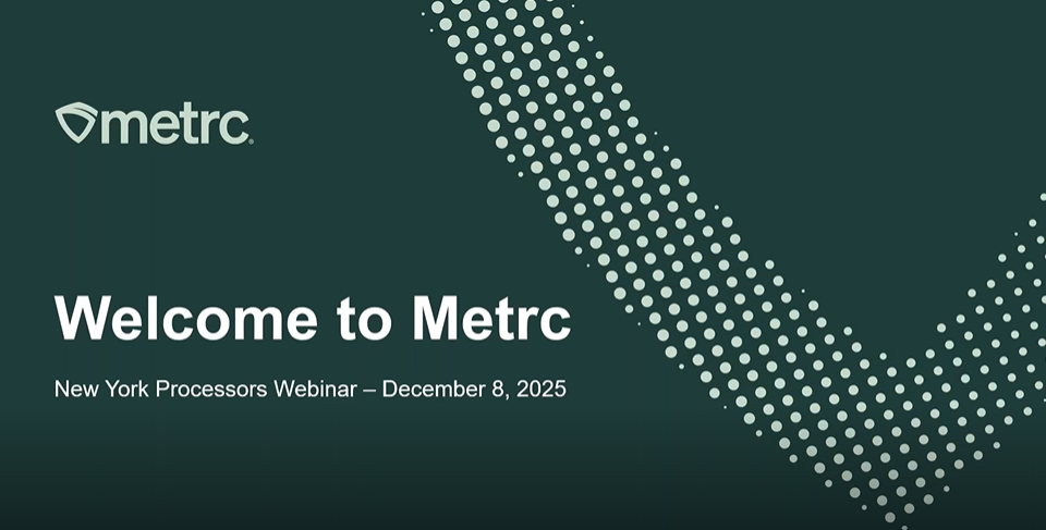 Welcome to Metrc: New York’s Processors Webinar