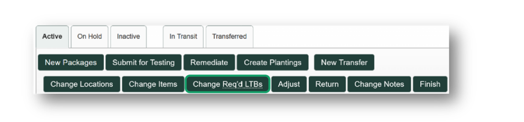 Select the “Change Req’d LTB’s” button to make the necessary changes and ensure the proper test results are recorded for the product.
